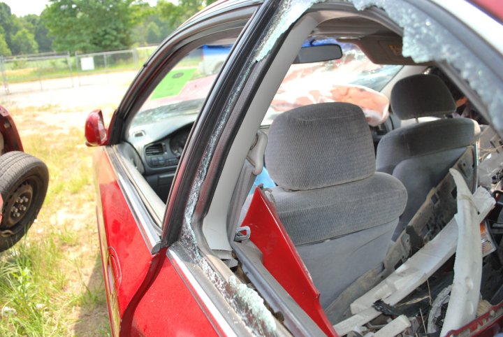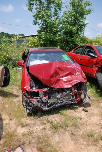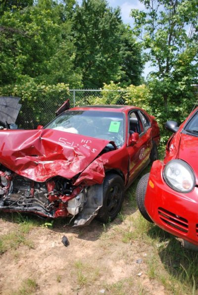 The following link will show you video of the vehicles after they were moved off the road. You can click on an icon to view it at full screen. Sean’s car is the red one. We went to the towing place today to get the license plates and Sean took the photos posted here.