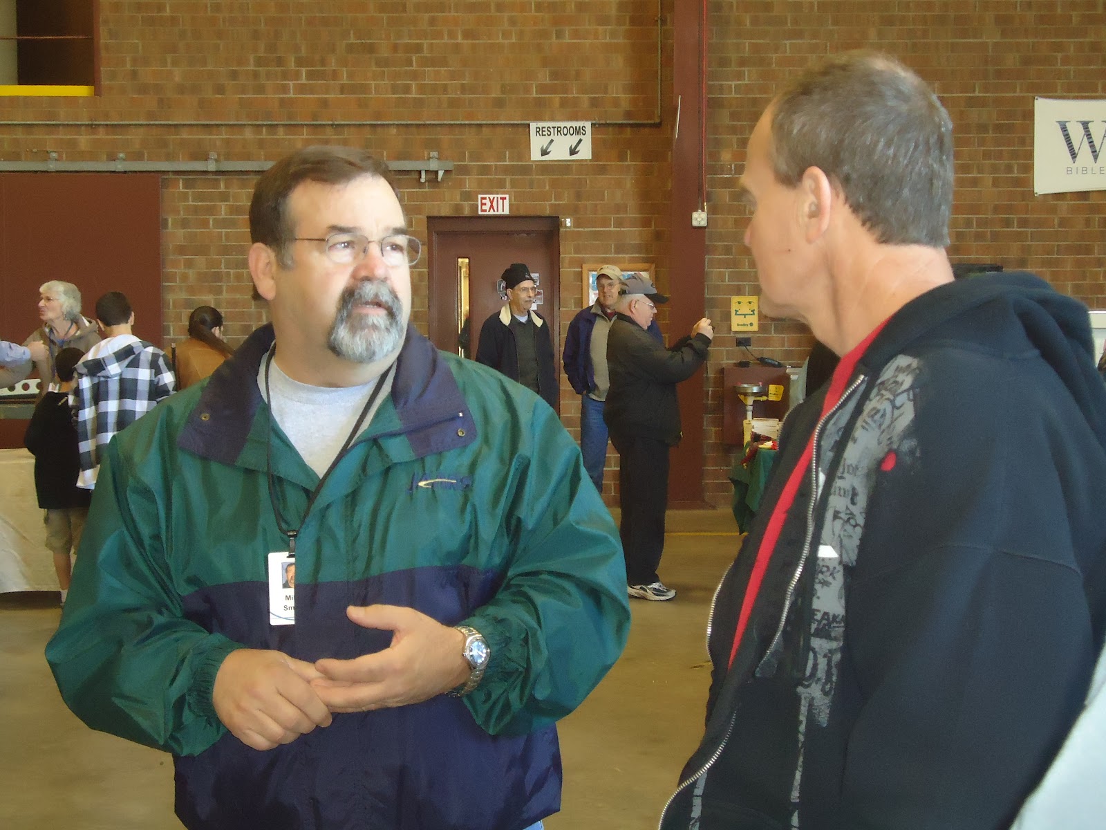 | Mike speaks to one of many visitors that day |